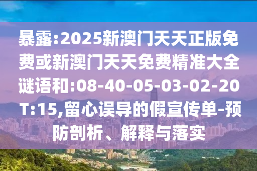 暴露:2025新澳門天天正版免費(fèi)或新澳門天天免費(fèi)精準(zhǔn)大全謎語(yǔ)和:08-40-05-03-02-20 T:15,留心誤導(dǎo)的假宣傳單-預(yù)防剖析、解釋與落實(shí)