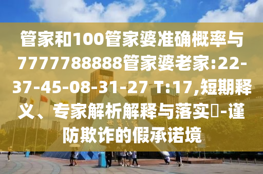 管家和100管家婆準確概率與7777788888管家婆老家:22-37-45-08-31-27 T:17的短期釋義、專家解析解釋與落實?