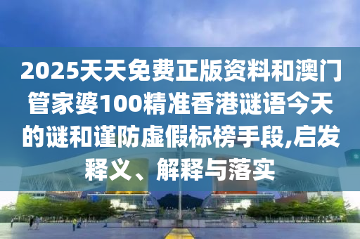 2025天天免費(fèi)正版資料”和“澳門管家婆100精準(zhǔn)香港謎語”的釋義、解釋與落實(shí),以及謹(jǐn)防虛假宣傳的提醒