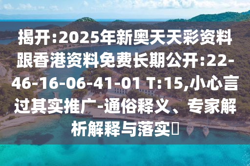 2025年新奧天天彩資料跟香港資料免費長期公開:22-46-16-06-41-01 T:15,小心言過其實推廣”的通俗釋義、專家解析解釋與落實