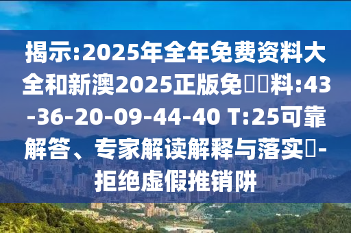 揭示:2025年全年免費(fèi)資料大全和新澳2025正版免費(fèi)資料:43-36-20-09-44-40 T:25可靠解答、專家解讀解釋與落實?-拒絕虛假推銷阱
