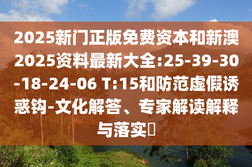 2025新門正版免費(fèi)資本和新澳2025資料最新大全:25-39-30-18-24-06 T:15的文化解答、專家解讀解釋與落實(shí)?