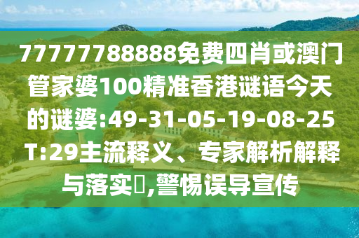 關(guān)于關(guān)鍵詞“77777788888免費(fèi)四肖或澳門管家婆100精準(zhǔn)香港謎語(yǔ)今天的謎婆:49-31-05-19-08-25 T:29”的警惕誤導(dǎo)宣傳以及主流釋義、專家解析解釋與落實(shí)