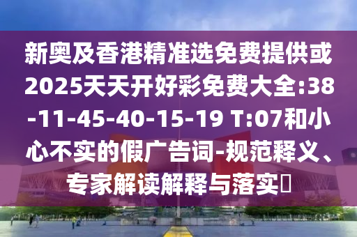 新奧及香港精準選免費提供或2025天天開好彩免費大全:38-11-45-40-15-19 T:07:規(guī)范釋義、專家解讀解釋與落實?