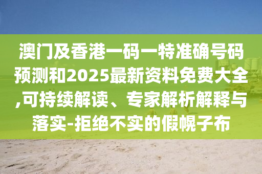 澳門及香港一碼一特準確號碼預測和2025最新資料免費大全的可持續(xù)解讀、專家解析解釋與落實