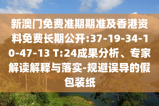 新澳門免費(fèi)準(zhǔn)期期準(zhǔn)及香港資料免費(fèi)長(zhǎng)期公開:37-19-34-10-47-13 T:24成果分析、專家解讀解釋與落實(shí)-規(guī)避誤導(dǎo)的假包裝紙