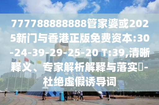 777788888888管家婆或2025新門與香港正版免費(fèi)資本:30-24-39-29-25-20 T:39,清晰釋義、專家解析解釋與落實(shí)?-杜絕虛假誘導(dǎo)詞