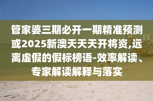 管家婆三期必開一期精準(zhǔn)預(yù)測或2025新澳天天天開將資,遠(yuǎn)離虛假的假標(biāo)榜語-效率解讀、專家解讀解釋與落實