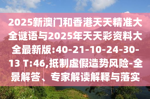 2025新澳門和香港天天精準(zhǔn)大全謎語與2025年天天彩資料大全最新版:40-21-10-24-30-13 T:46:全景解答、專家解讀解釋與落實(shí)