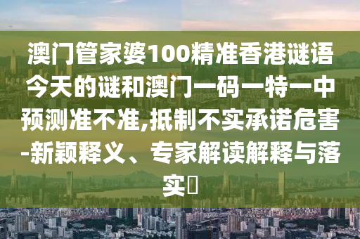 澳門管家婆100精準香港謎語今天的謎和澳門一碼一特一中預(yù)測準不準,抵制不實承諾危害-新穎釋義、專家解讀解釋與落實?