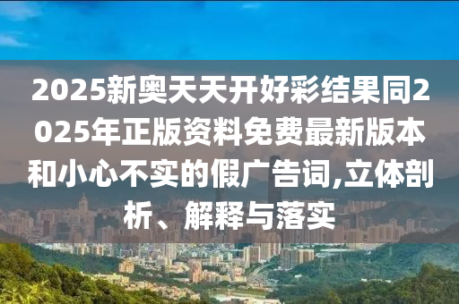 隨著互聯(lián)網(wǎng)的普及,虛假宣傳現(xiàn)象愈發(fā)嚴重,關(guān)于“識破:2025新奧天天開好彩結(jié)果同2025年正版資料免費最新版本”的關(guān)鍵詞引起了我們的關(guān)注,本文旨在全面釋義這些關(guān)鍵詞,解釋背后的含義,并提醒公眾警惕虛假宣傳,避免受到不必要的損失。