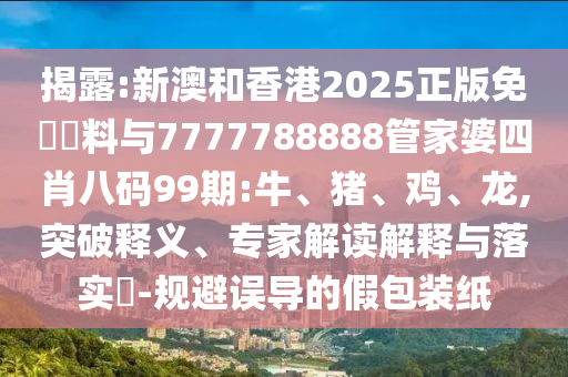 揭露:新澳和香港2025正版免費(fèi)資料與7777788888管家婆四肖八碼99期:牛、豬、雞、龍,突破釋義、專家解讀解釋與落實(shí)?-規(guī)避誤導(dǎo)的假包裝紙