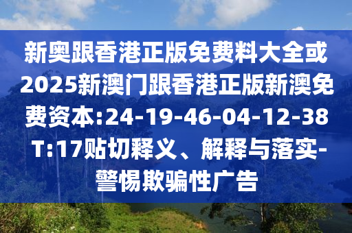 新奧跟香港正版免費料大全或2025新澳門跟香港正版新澳免費資本:24-19-46-04-12-38 T:17:貼切釋義、解釋與落實