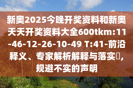 新奧2025今晚開獎資料和新奧天天開獎資料大全600tkm:11-46-12-26-10-49 T:41:前沿釋義、專家解析解釋與落實?