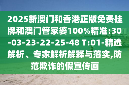 2025新澳門和香港正版免費掛牌和澳門管家婆100%精準(zhǔn):30-03-23-22-25-48 T:01-精選解析、專家解析解釋與落實,防范欺詐的假宣傳畫