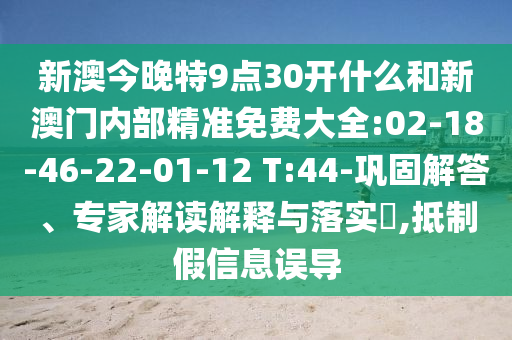 摘要:,,關(guān)于新澳今晚特9點(diǎn)30開(kāi)獎(jiǎng)信息以及新澳門內(nèi)部精準(zhǔn)免費(fèi)資料,包括特定號(hào)碼如02-18-46-22-01-12和T:44等,存在專家解讀與解答。應(yīng)警惕假信息的誤導(dǎo),確保獲取真實(shí)可靠的信息來(lái)源。對(duì)于此類游戲信息,建議謹(jǐn)慎對(duì)待,避免盲目跟風(fēng)或輕信不可靠來(lái)源。