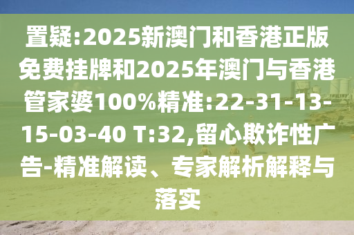置疑:2025新澳門和香港正版免費掛牌和2025年澳門與香港管家婆100%精準:22-31-13-15-03-40 T:32,留心欺詐性廣告-精準解讀、專家解析解釋與落實