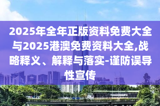 2025年全年正版資料免費(fèi)大全”與“2025港澳免費(fèi)資料大全”的謹(jǐn)防誤導(dǎo)性宣傳——戰(zhàn)略釋義、解釋與落實(shí)