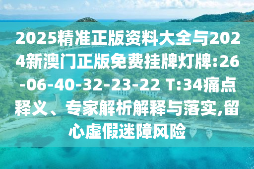 2025精準正版資料大全”與“2024新澳門正版免費掛牌燈牌:26-06-40-32-23-2 ?T:34”的釋義、專家解析與落實,以及警惕虛假宣傳的提醒