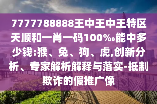7777788888王中王中王特區(qū)天順和一肖一碼100‰能中多少錢:猴、兔、狗、虎:創(chuàng)新分析、專家解析解釋與落實(shí)