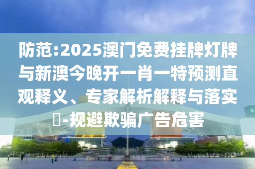 關(guān)于防范“澳門免費掛牌燈牌與新澳今晚開一肖一特預(yù)測”及規(guī)避欺騙廣告危害的直觀釋義、專家解析解釋與落實