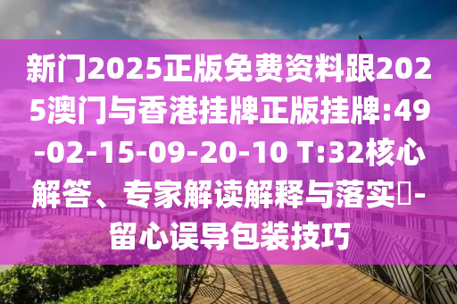 新門2025正版免費(fèi)資料跟2025澳門與香港掛牌正版掛牌:49-02-15-09-20-10 T:32核心解答、專家解讀解釋與落實(shí)?-留心誤導(dǎo)包裝技巧
