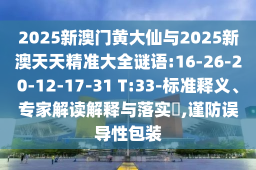 2025新澳門黃大仙與2025新澳天天精準(zhǔn)大全謎語:16-26-20-12-17-31 T:33-標(biāo)準(zhǔn)釋義、專家解讀解釋與落實”的解析及警惕誤導(dǎo)性包裝
