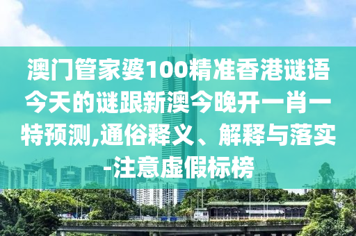 澳門管家婆100精準香港謎語今天的謎跟新澳今晚開一肖一特預測的通俗釋義、解釋與落實