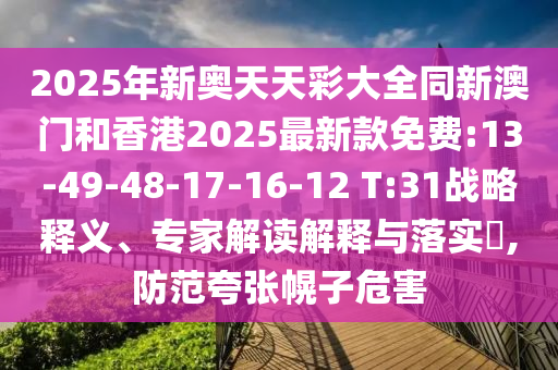 2025年新奧天天彩大全同新澳門和香港2025最新款免費(fèi):13-49-48-17-16-12 T:31”的虛假宣傳與戰(zhàn)略釋義、專家解讀解釋與落實(shí)的警示文章