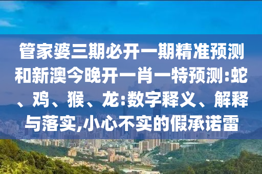 管家婆三期必開一期精準(zhǔn)預(yù)測(cè)和新澳今晚開一肖一特預(yù)測(cè):蛇、雞、猴、龍,小心不實(shí)的假承諾雷”的數(shù)字釋義、解釋與落實(shí)