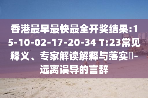 香港最早最快最全開獎結(jié)果:15-10-02-17-20-34 T:23常見釋義、專家解讀解釋與落實?-遠(yuǎn)離誤導(dǎo)的言辭