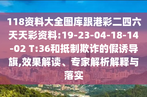 118資料大全圖庫(kù)跟港彩二四六天天彩資料:19-23-04-18-14-02 T:36和抵制欺詐的假誘導(dǎo)旗,效果解讀、專家解析解釋與落實(shí)
