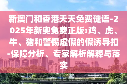摘要:,,關于新澳門和香港天天免費謎語,至2025年新奧免費正版提供雞、虎、牛、豬等生肖謎語,同時提醒警惕虛假誘導扣除。本文提供分析保障、專家解析解釋及落實措施,幫助公眾理解謎語背后的真實含義,避免被虛假信息誤導。