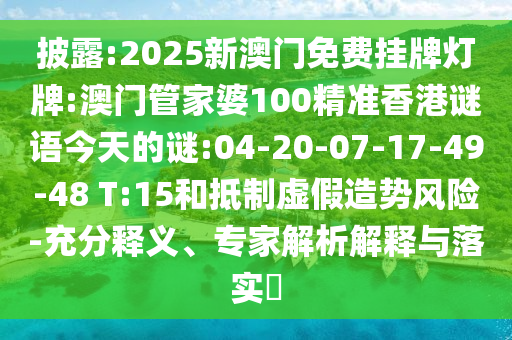 2025新澳門免費掛牌燈牌:澳門管家婆100精準香港謎語今天的謎:04-20-07-17-49-48 T:15:充分釋義、專家解析解釋與落實?