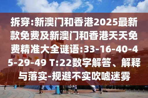 拆穿:新澳門和香港2025最新款免費(fèi)及新澳門和香港天天免費(fèi)精準(zhǔn)大全謎語:33-16-40-45-29-49 T:22數(shù)字解答、解釋與落實(shí)-規(guī)避不實(shí)吹噓迷霧