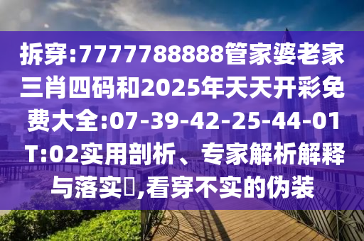 拆穿:7777788888管家婆老家三肖四碼和2025年天天開彩免費大全:07-39-42-25-44-01 T:02實用剖析、專家解析解釋與落實?,看穿不實的偽裝