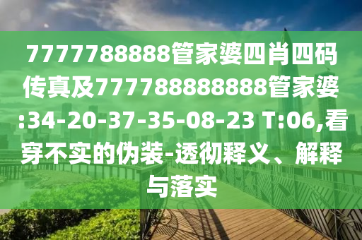 7777788888管家婆四肖四碼傳真及777788888888管家婆:34-20-37-35-08-23 T:06”的透徹釋義、解釋與落實(shí),警惕虛假宣傳