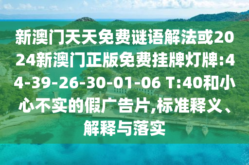 關(guān)于新澳門天天免費謎語解法及2024新澳門正版免費掛牌燈牌的相關(guān)釋義、解釋與落實,以及公眾對于虛假宣傳的警惕