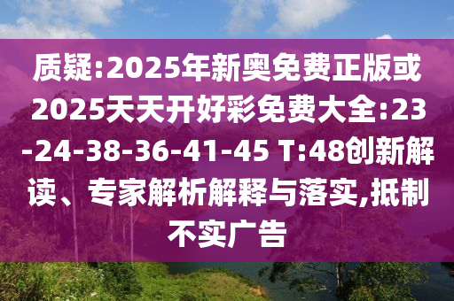 質(zhì)疑:2025年新奧免費(fèi)正版或2025天天開好彩免費(fèi)大全:23-24-38-36-41-45 T:48創(chuàng)新解讀、專家解析解釋與落實(shí),抵制不實(shí)廣告