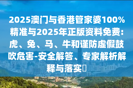 摘要:關于澳門與香港管家婆在2025年的預測資料,聲稱提供100%精準的預測,同時也有正版資料免費的宣傳。涉及生肖如虎、兔、馬、牛等。提醒公眾謹防虛假鼓吹,注意安全性。同時有專家進行解析解釋并強調落實防范虛假信息的重要性。具體內容和真實性需進一步核實,謹慎對待。