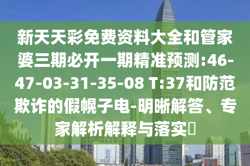 新天天彩免費資料大全和管家婆三期必開一期精準預測:46-47-03-31-35-08 T:37的明晰解答、專家解析解釋與落實?