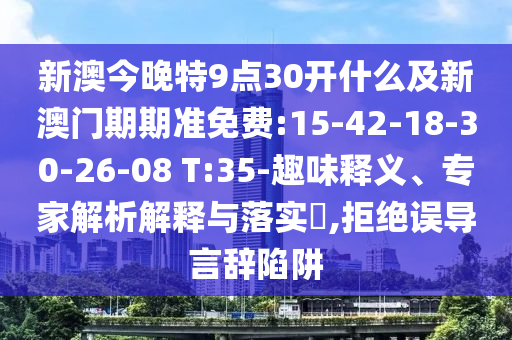 新澳今晚特9點30開什么及新澳門期期準(zhǔn)免費:15-42-18-30-26-08 T:35的趣味釋義、專家解析解釋與落實?