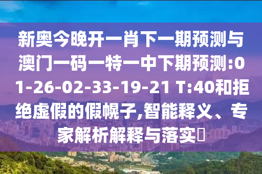 關(guān)于新奧今晚開一肖下一期預(yù)測與澳門一碼一特一中下期預(yù)測的全面釋義、專家解讀與落實以及拒絕虛假宣傳的解析