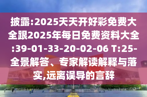 2025天天開好彩免費大全跟2025年每日免費資料大全:39-01-33-20-02-06 T:25:全景解答、專家解讀解釋與落實