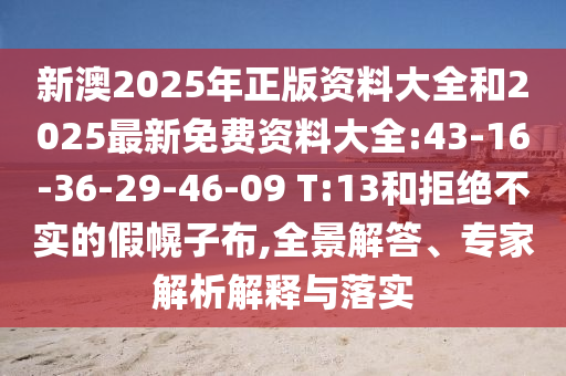 摘要:新澳2025年正版資料與最新免費(fèi)資料包括特定數(shù)字組合,如43-16-36-29-46-09 T:13等。提供全景解答、專家解析解釋和拒絕不實(shí)假幌子的承諾。這些內(nèi)容旨在為讀者提供真實(shí)可靠的信息,并致力于解釋和解答相關(guān)領(lǐng)域的專業(yè)知識。