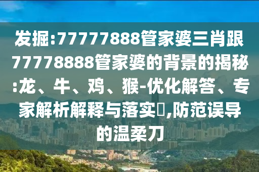 77777888管家婆三肖跟77778888管家婆的背景的揭秘:龍、牛、雞、猴:優(yōu)化解答、專家解析解釋與落實(shí)?