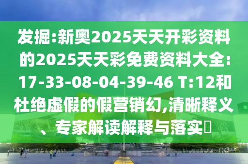 發(fā)掘:新奧2025天天開彩資料的2025天天彩免費資料大全:17-33-08-04-39-46 T:12和杜絕虛假的假營銷幻,清晰釋義、專家解讀解釋與落實?
