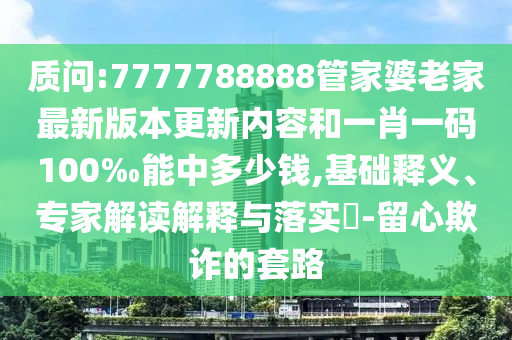7777788888管家婆老家最新版本更新內(nèi)容和一肖一碼100%能中多少錢”的基礎(chǔ)釋義、專家解讀與落實(shí),以及提醒公眾警惕虛假宣傳的文章