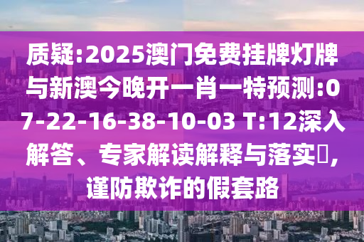 質(zhì)疑:2025澳門免費(fèi)掛牌燈牌與新澳今晚開一肖一特預(yù)測:07-22-16-38-10-03 T:12深入解答、專家解讀解釋與落實(shí)?,謹(jǐn)防欺詐的假套路
