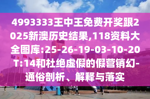 尊敬的讀者們:今天我們將針對一些關(guān)鍵詞進(jìn)行詳細(xì)的解釋和剖析,以幫助大家認(rèn)清現(xiàn)實(shí),警惕虛假宣傳,關(guān)鍵詞包括“4993333王中王免費(fèi)開獎”、“2025新澳歷史結(jié)果”、“118資料大全圖庫”、特定數(shù)字組合以及虛假營銷等,我們將逐一進(jìn)行解讀。